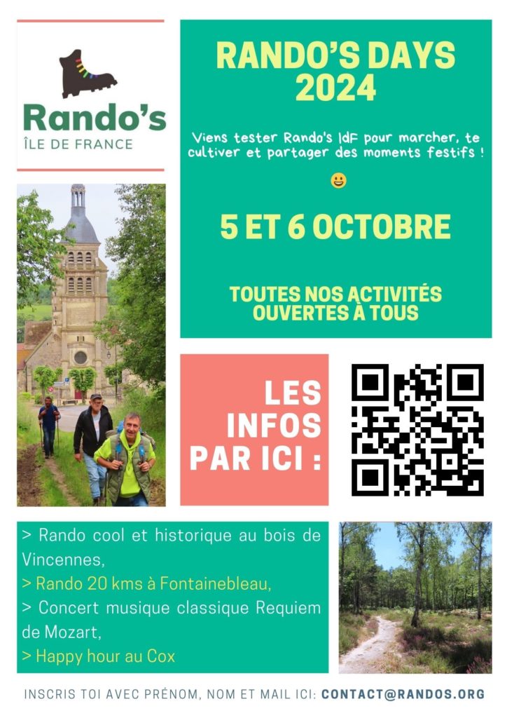 Le week-end des 5 et 6 octobre, c’est les RANDO’S DAYS 2024 ! Notre 1ère opération portes ouvertes pour que toi, non adhérent, tu puisses facilement découvrir notre association. Inscription ici. Au programme: randonnées, balade culturelle, concert classique, Happy hour. Si tu es déjà adhérent, nous comptons sur toi pour toi joindre à nous et surtout en parler à tes amis !